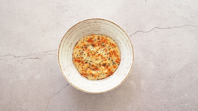 Cremoso hummus de garbanzos con crujiente de falafel