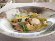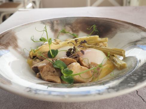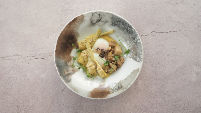Irresistibles huevos ecológicos a baja temperatura acompañados de alcachofas confitadas, ceps (boletus edulis) y parmantier de patata